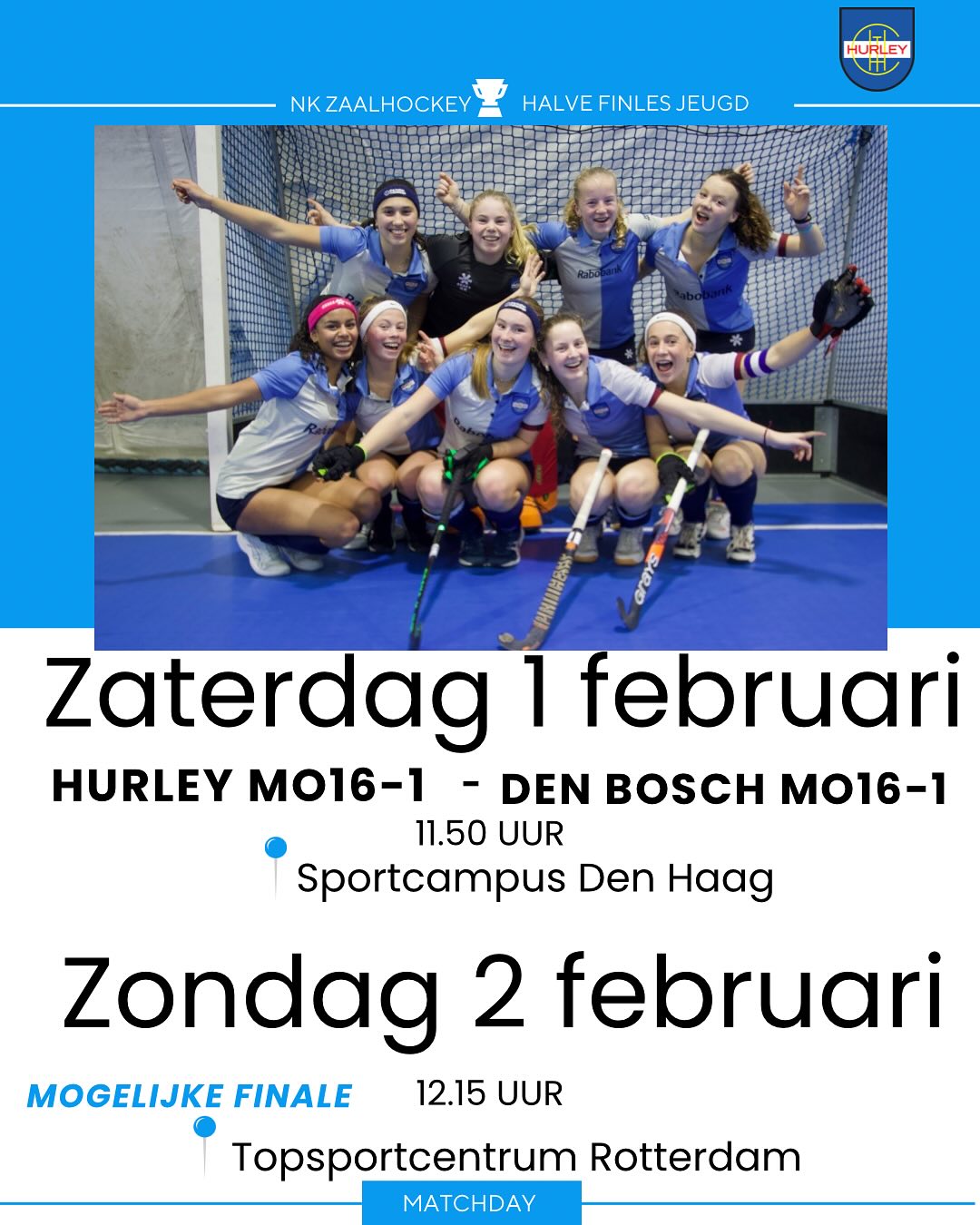 📅 Zaterdag 31 januari en zondag 1 februari spelen zMO16-1, zMO18-1 en zJO16-1 de achtste- en kwartfinales (Valkenhuizen, Arnhem).