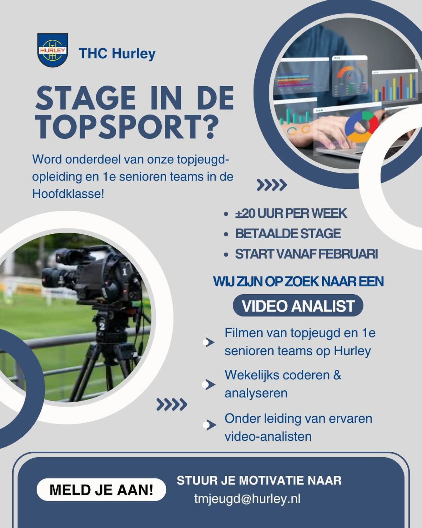 Hou jij van hockey, data en video? 👀Wij zoeken een stagiair die onze topjeugd, Dames 1 en Heren 1 helpt met filmen & wedstrijdanalyses.